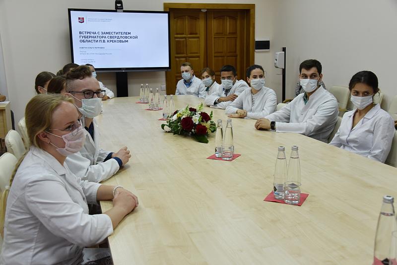С врачами – выпускниками-отличниками, волонтёрами, лауреатами конкурсов и стипендиатами Президента РФ, получившими образование по целевому набору, встретился замгубернатора Павел Креков.