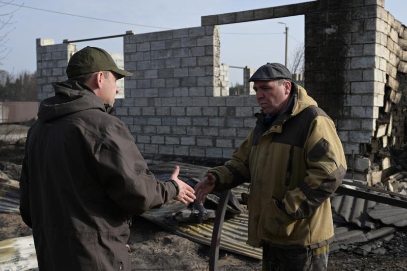Во время осмотра территории посёлка губернатор Евгений Куйвашев обсудил с погорельцами вопросы оказания помощи.