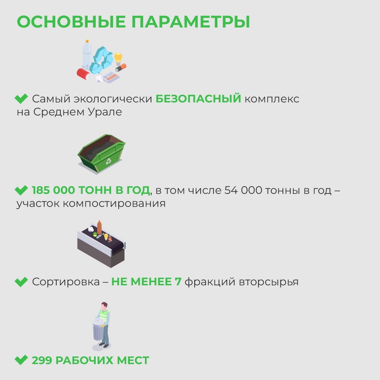— В настоящее время мусоросортировка совокупной мощностью 245 тысяч тонн в год у нас организована в Екатеринбурге, Каменске-Уральском, Алапаевске, Лесном, Верхней Пышме. Планируем, что в конце года заработает МСК в Краснотурьинске мощностью в 129 тысяч тонн в год. Там же в следующем году заработает участок компостирования на 50 тысяч тонн. Достаточно высокая готовность у мусоросортировочного комплекса в Нижнем Тагиле.