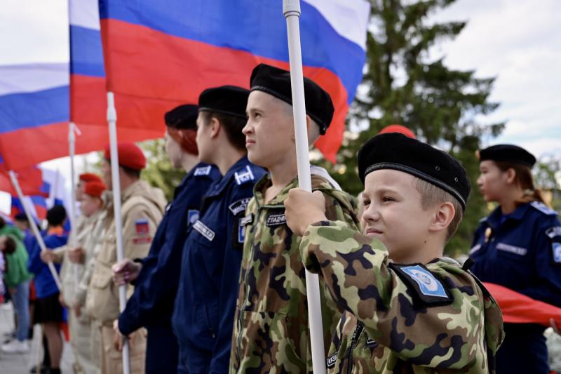 В заключение церемонии молодые спортсмены и активисты развернули российский триколор площадью 36 квадратных метров на площадке перед зданием регионального правительства.