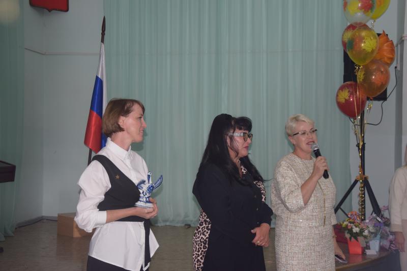 Принимала на линейке поздравления и Лариса Ивановна Нечкина, учитель иностранного языка, педагогический стаж которой в этом году составил 50 лет!