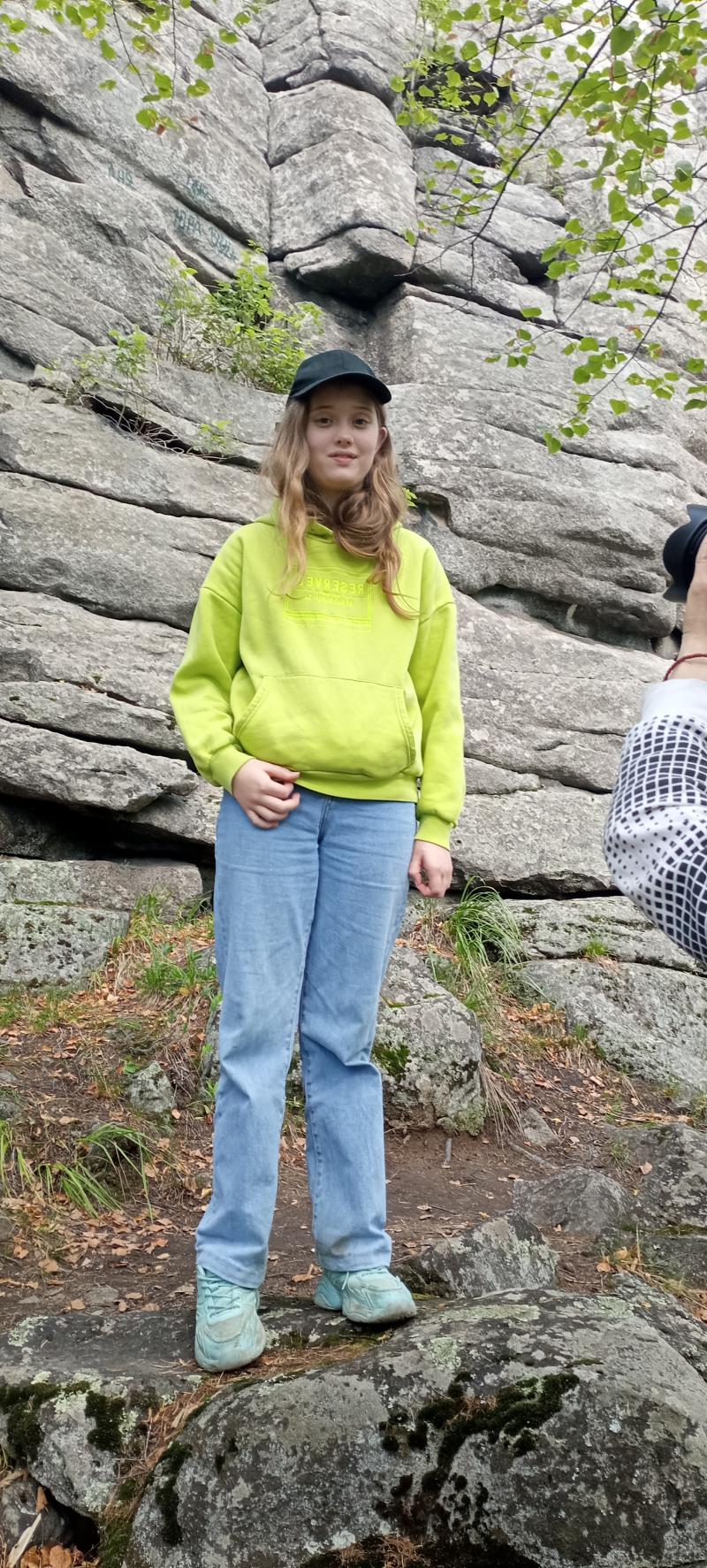 После первого долгого подъема на гору уже с нетерпением вглядывались в даль в поисках признаков высоких скал, но каково же было узнать, что таких подъемов впереди еще несколько! А тем временем наши проводники из клуба, среди которых школьники второго и третьего класса, все прибавляли и прибавляли ходу. Спускаться приходилось по каменным ступеням - складкам скалы. Становилось страшновато, но взрослые контролировали каждого, никто не оступился; настроение сменилось восторгом, когда оглянулись на первое преодоленное препятствие. Вокруг нас стоял лес, дремучий сказочный. Приятно удивило отсутствие мусора, которое случается на исхоженных маршрутах. Признаться, настроение менялось от настороженного до восторга от пролетевшей мимо лесной большой птицы, ящерицы, выскочившей из- под ноги, криков то ли зверя, то ли птицы из чащи. Идущие впереди сосредоточенные малыши-проводники своим упорством напоминали сказочных гномов, которые упорно вели нас к приключениям. И совсем неожиданно, напрягая, казалось бы, последние силы, мы увидели окончание тропы самого подножия величественной каменной стены. Мы долго стояли ошарашенные грандиозным сооружением природы! Все вглядывались в скалы, которые напоминали головы животных и даже людей.