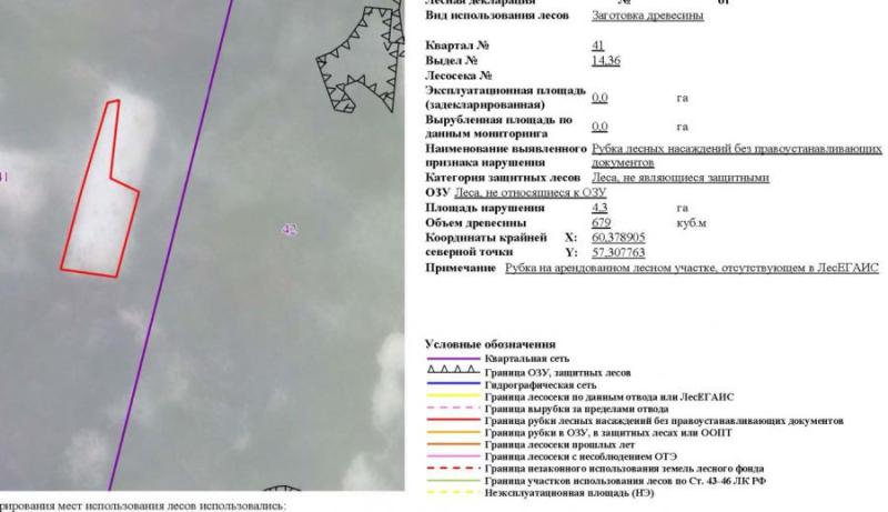 Специалисты Рослесинфорга при фиксации изменений на космоснимках проводят анализ их законности, используя имеющуюся базу данных в информационной системе ЛесЕГАИС. Если границы обнаруженной рубки не соответствуют разрешительному документу или такой документ на данный участок отсутствует, то незамедлительно информируются контрольно-надзорные органы.