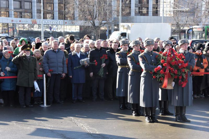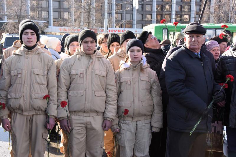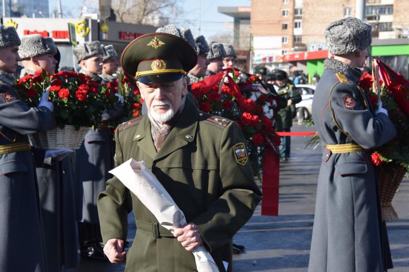 В торжественно-траурной церемонии приняли участие также ветераны, председатель Законодательного Собрания региона Людмила Бабушкина, заместитель полномочного представителя Президента Российской Федерации в Уральском федеральном округе Борис Кириллов, глава Екатеринбурга Алексей Орлов, представители командования войсками ЦВО и Росгвардии, члены областного правительства, руководители городской администрации, общественники. Губернатор и собравшееся почтили память уральских воинов минутой молчания. Рота почётного караула прошла возле памятника торжественным маршем.