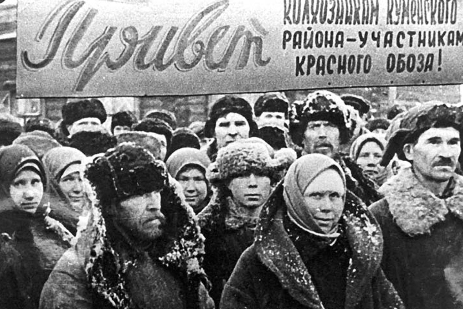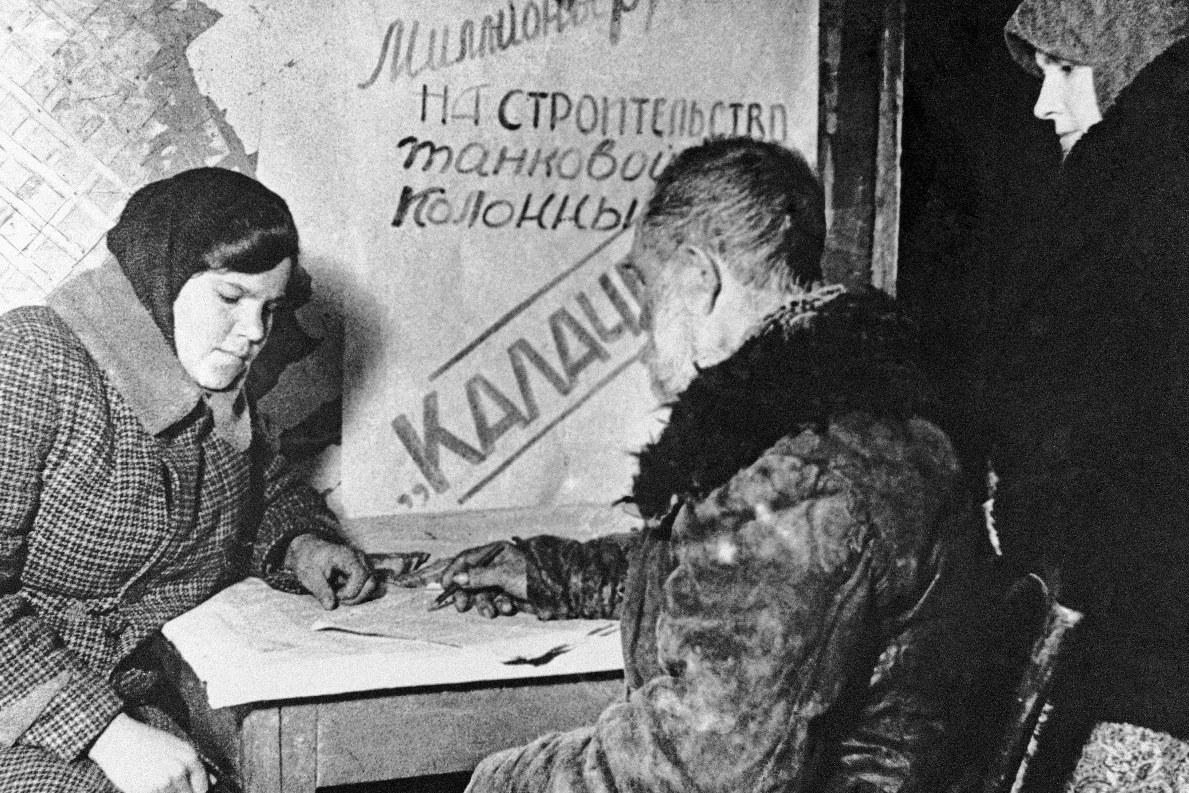 Жители села Калач собирают деньги на танковую колонну "Калачевец". 1943 год.