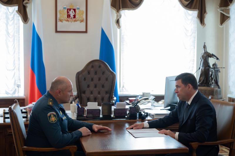 Дальнейшее развитие противопожарной службы и системы централизованного оповещения населения Свердловской области стало темой рабочей встречи губернатора Евгения Куйвашева и главы МЧС России Александра Куренкова 2 сентября.