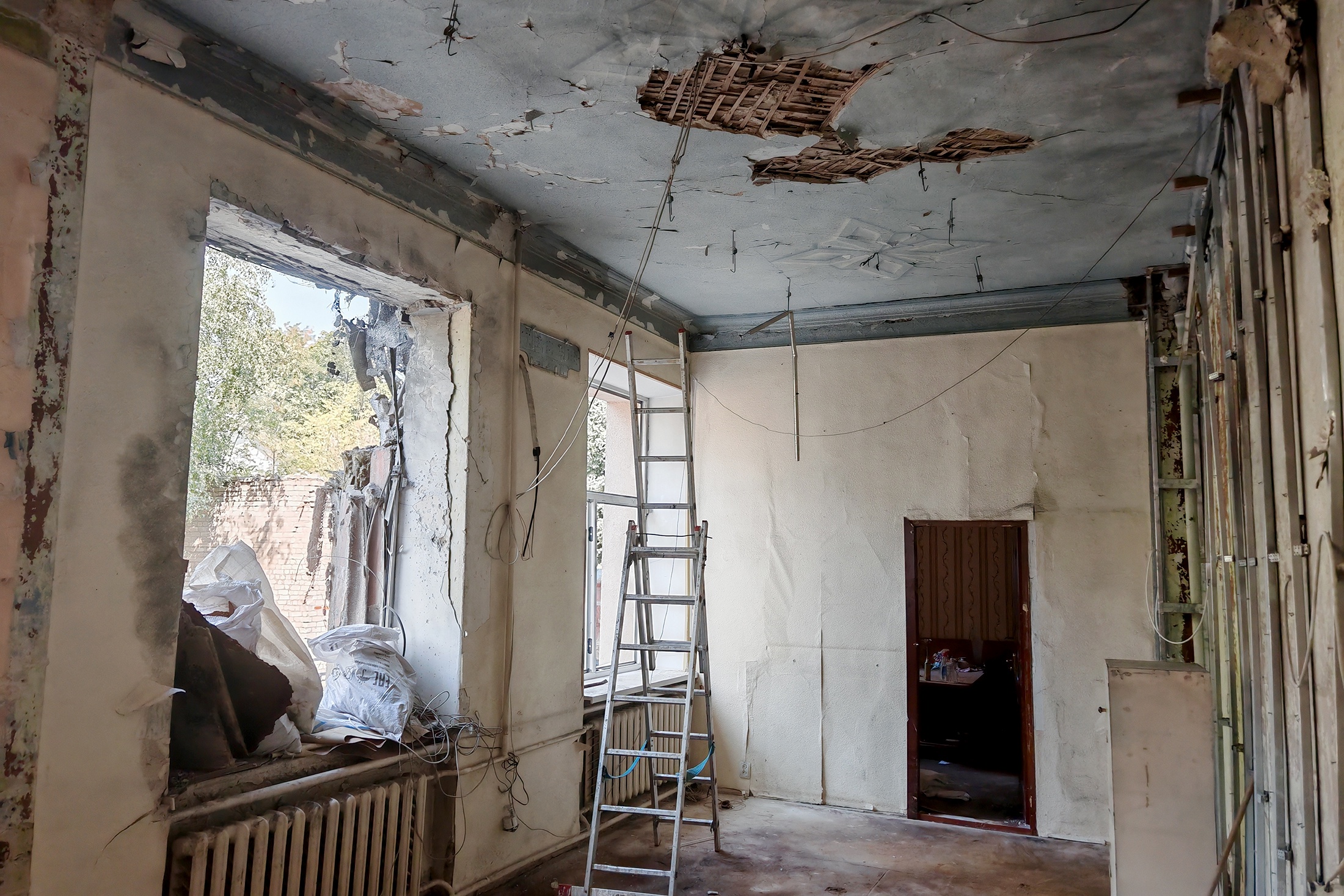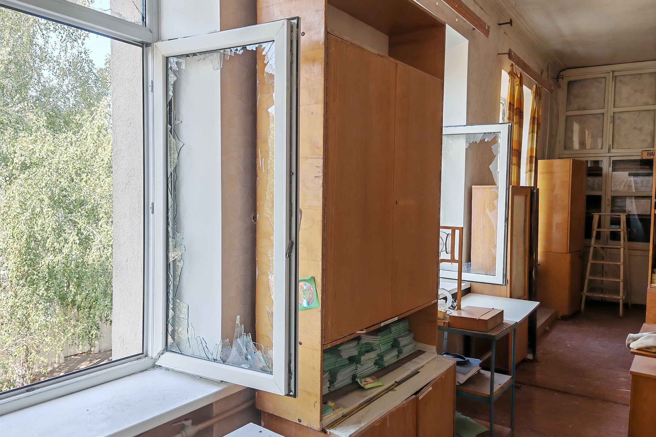 Больше всего пострадал кабинет директора и приемная на первом этаже. Словно специально целили сюда. В помещениях уничтожена отделка, обвалился потолок. Впрочем, от взрыва вылетели стекла и на верхних этажах, где находятся классы и подсобные помещения.