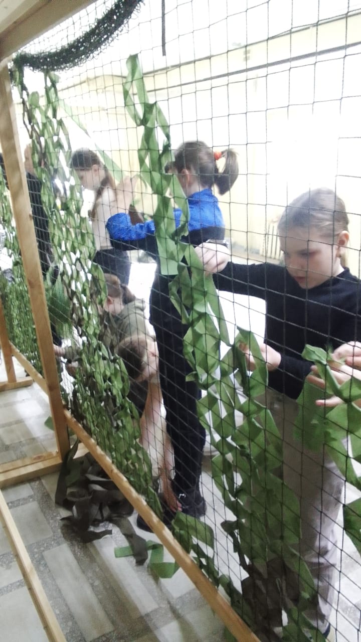 Но осенью 2023 года возникла новая острая потребность — маскировочные сети. Волонтёры обратились в Союз ветеранов боевых действий г.Новоуральска, прошли обучение, нашли помещение, и 13 сентября 2023 года была сплетена первая сеть. В работу включились и школьники: в ноябре 2023 года учащиеся Калиновской средней школы вместе с классным руководителем Натальей Матвеевой и парой учителей стали помогать волонтёрам.