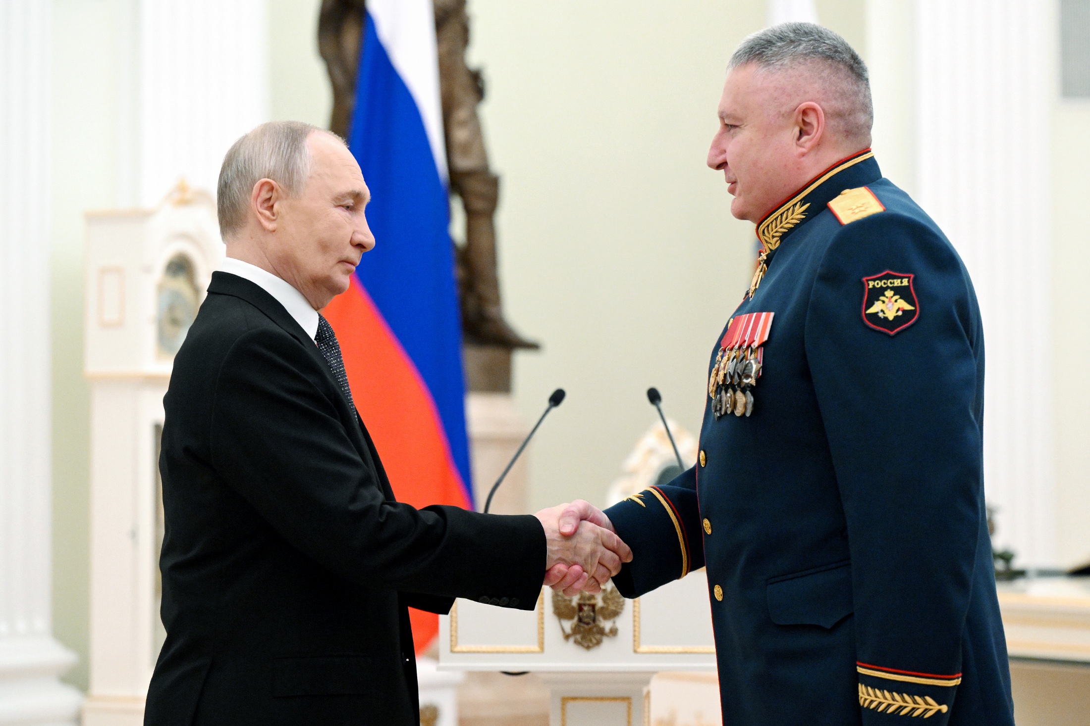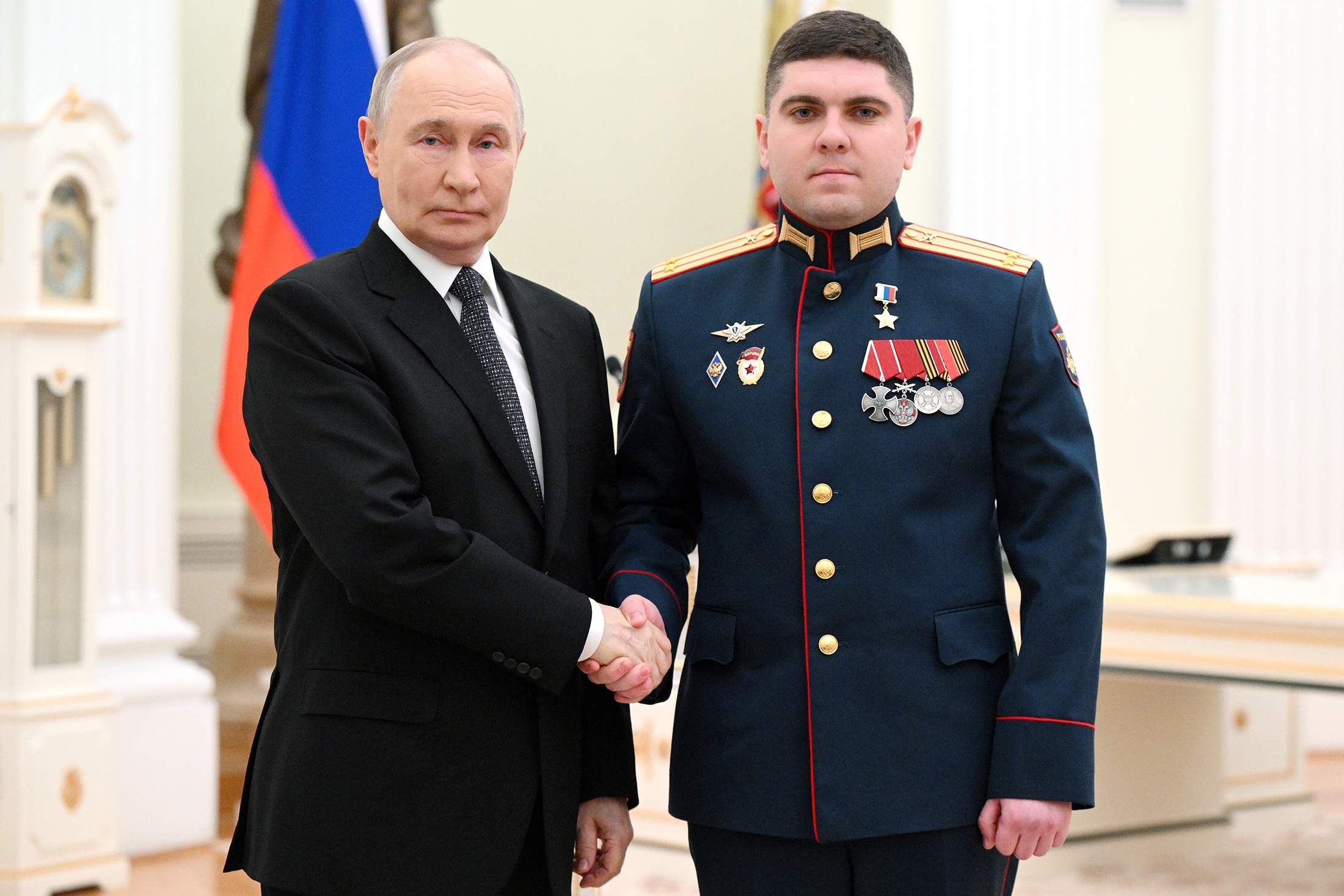 Высшую награду - медали "Золотая Звезда" получили девять Героев России - генерал-лейтенант, заместитель командующего войсками Центрального военного округа Арутюн Дарбинян, генерал-майор Евгений Ковылин, полковники Вячеслав Веденин и Александр Фабричнов, подполковник Инал Гериев, капитан Василь Ямалетдинов, старшие лейтенанты Сергей Каримов и Владимир Силенко, а также лейтенант Михаил Король. Орденом Мужества были награждены полковник войск национальной гвардии РФ Александр Рукосуев и подполковник войск национальной гвардии РФ Николай Нетёсов. После награждения Владимир Путин пообщался с военными за бокалом шампанского в неформальной обстановке. "С Днем защитника Отечества - с вашим днем", - сказал он.
