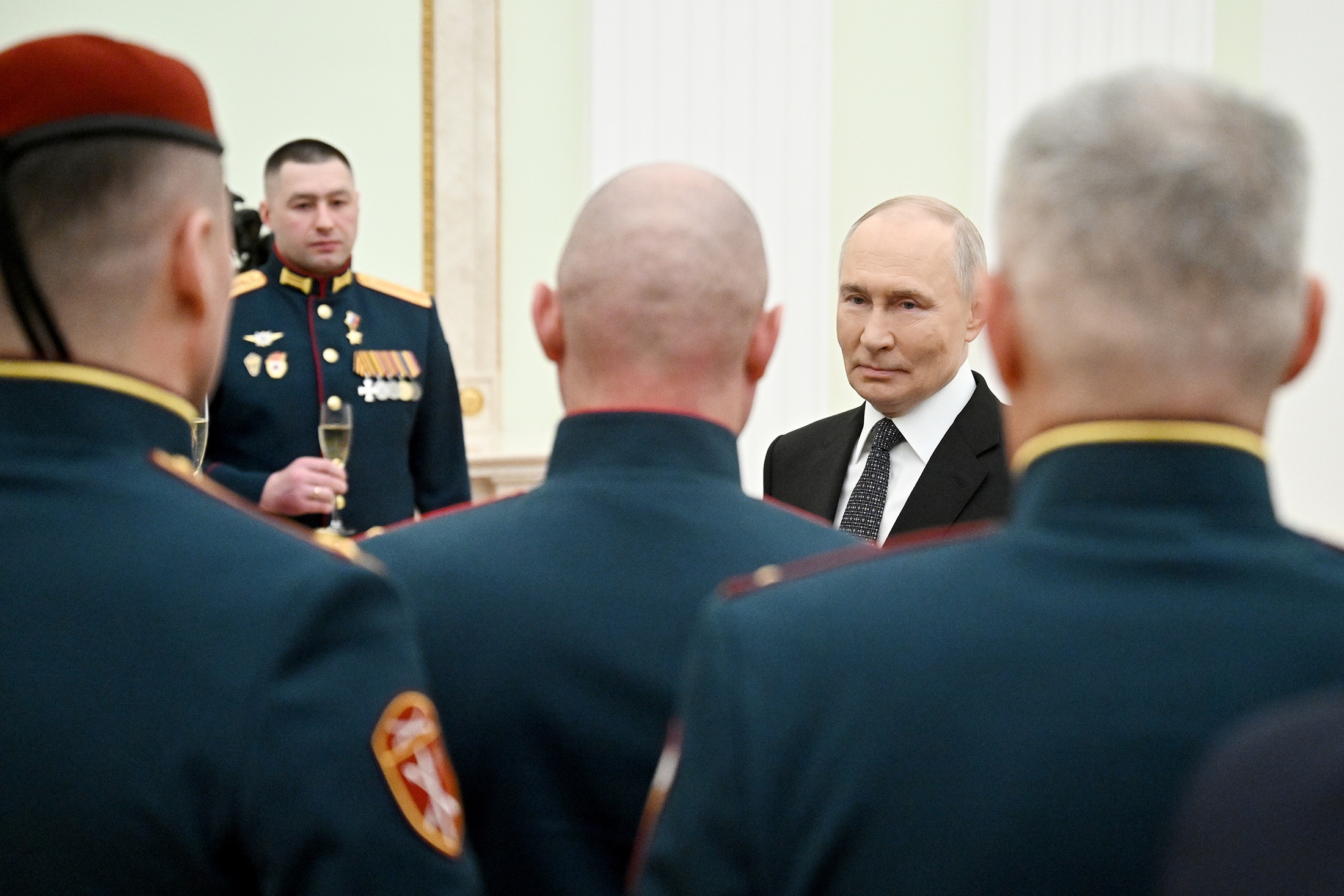 Церемония прошла в представительском кабинете президента в Кремле. На ней, кроме главы государства и награжденных, также присутствовал министр обороны Андрей Белоусов. "Поздравляю вас с Днем защитника Отечества - c праздником, который в последние годы мы отмечаем с особым чувством гордости и благодарности", - сказал президент. "Чествуем всех, кто с риском для жизни, с отвагой и мужеством, с любовью к России, к нашему народу исполняет свой воинский долг в зоне специальной военной операции, стоит на страже наших рубежей, обеспечивает стратегический паритет", - подчеркнул он.