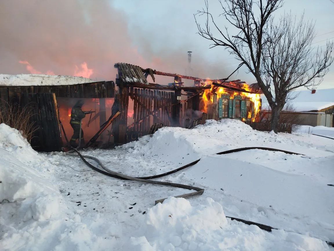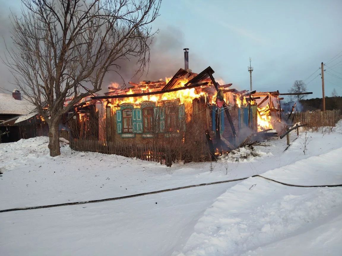 Днем 13 февраля вспыхнул дом и надворные постройки по ул.Кирова в Верхних Таволгах, причиной стал аварийный режим работы электросетей.