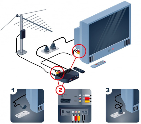 Как самостоятельно подключить цифровое телевидение с помощью цифровой приставки с поддержкой формата DVB-T2. Инструкция и схема подключения.