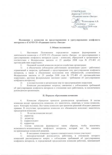 Положение о комиссии по предотвращению и урегулированию конфликта интересов