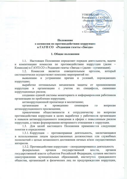 Положение о комиссии по противодействию коррупции