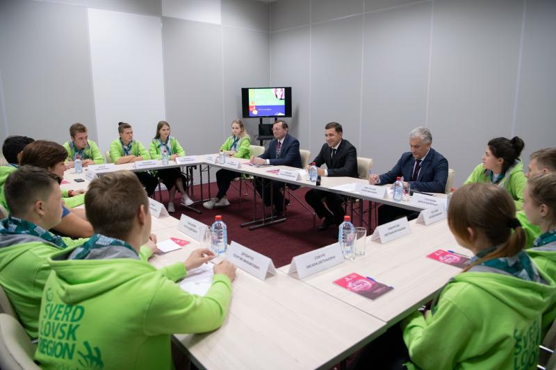 На полях международной промышленной выставки ИННОПРОМ состоялась встреча губернатора Свердловской области Евгения Куйвашева с призерами сборной команды региона по профессиональному мастерству, принявшими участие в финале национального чемпионата «Молодые профессионалы» (WorldSkills Russia), который прошел в мае в Казани.