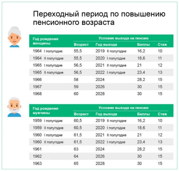Напомним, поэтапное повышение общеустановленного возраста, дающего право на страховую пенсию по старости, и некоторые виды пенсии по государственному обеспечению продлится в течение 10 лет. В первые несколько лет указанного периода действует специальная льгота – назначение пенсии на полгода раньше нового пенсионного возраста. Она предусмотрена для женщин 1964–1965 года рождения и мужчин 1959–1960 года рождения, которые по условиям прежнего законодательства должны были выйти на пенсию в 2019 и 2020 годах. Благодаря льготе такие граждане начали выходить на пенсию с 1 июля этого года в возрасте 55,5 лет (женщины) и 60,5 лет (мужчины).