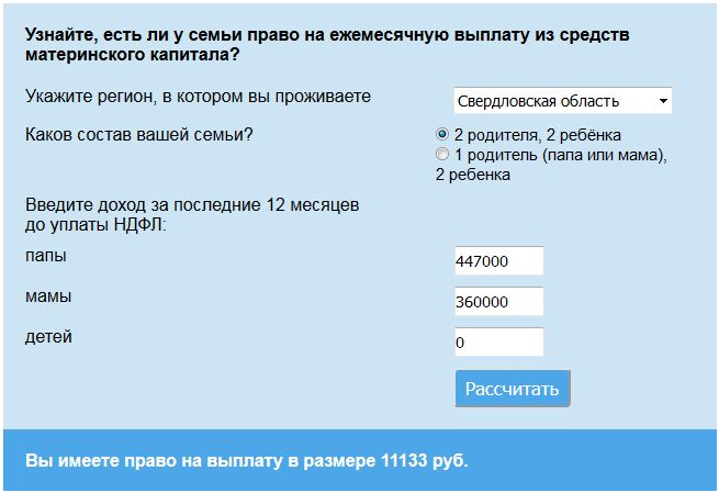 Понять, имеет ли семья право на получение ежемесячной выплаты, можно с помощью специального калькулятора на официальном сайте ПФР pfrf.ru в разделе