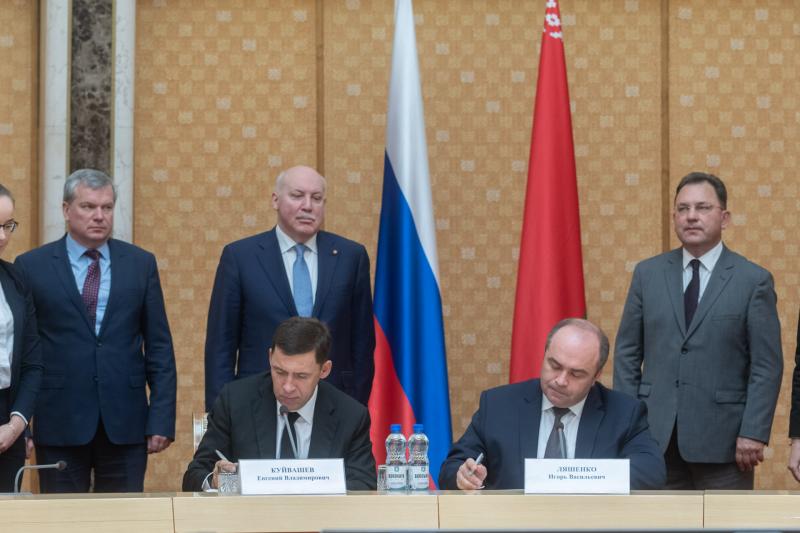 В Минске по итогам четвертого заседания Совета делового сотрудничества Свердловской области и Республики Беларусь Евгений Куйвашев и заместитель премьер-министра Республики Игорь Ляшенко подписали протокол, определяющий развитие урало-белорусских отношений на ближайшие годы.