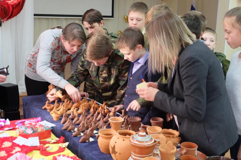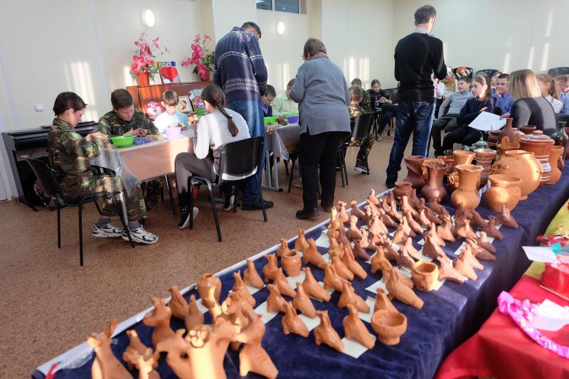 В актовом зале собрались 46 участников проекта. Юных мастеров приветствовал директор школы Колногоров Сергей Геннадьевич. На протяжении года в рамках проекта «Традициям коренного промысла — новое будущее» в МБОУ СОШ №4 проводятся мастер классы по изготовлению изделий в традиции таволожкой керамики организованные ХКО «Хутор Невьянский».