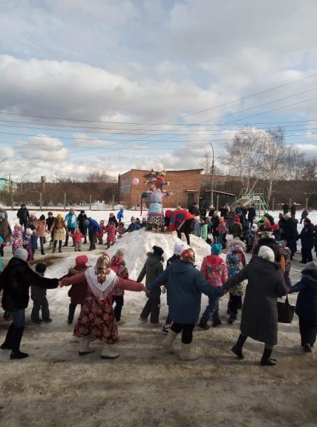 После спектакля артисты разъяснили зрителям смысл основного обряда, связанного с сжиганием Масленицы (зачем нужен хоровод, костер и т.д.), и сразу же приступили к нему. Благо, далеко ходить не надо было: большой хоровод был закружен на площадке перед Домом культуры. В центре его, конечно же, расположилась Масленица, а вокруг видимо-невидимо людей…