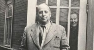 Фото «Евгений Львович Шварц у себя на даче, в Комарово. Лето, 1956. На заднем плане — Елена Юнгер». Из свободных интернет-источников