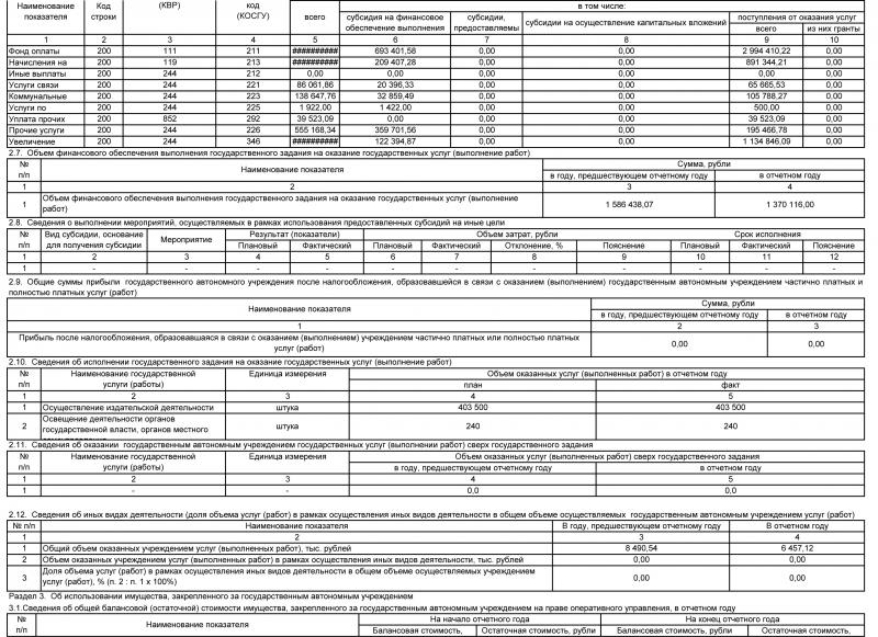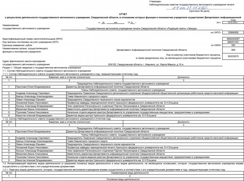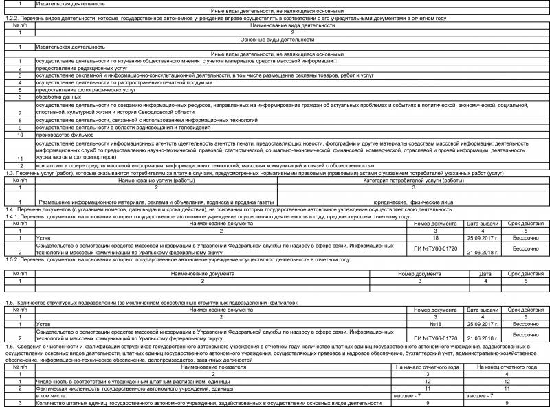 Отчет о результатах деятельности государственного автономного учреждения, Свердловской области