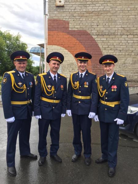 В составе парадного расчета ГУФСИН, принявшего участие в Параде Победы в Екатеринбурге 24 июня, сотрудники ИК-46 (на фото стоят четвером) капитан внутренней службы Виталий Дорофеев, лейтенант внутренней службы Александр Маслов, лейтенант внутренней службы Евгений Сеногноев, прапорщик внутренней службы Руслан Чудинов, а также трое сотрудников Кировградской ВК и два сотрудника Кировградского СИЗО-6.