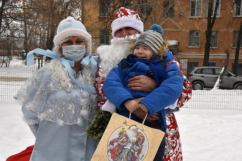 Шестилетнего Никиту из Екатеринбурга Дед Мороз и Снегурочка поздравили на детской площадке возле дома. Ребенок восторженно аплодировал дедушке и его внучке и охотно водил хоровод. В этом году Никита не сможет посетить новогодний утренник из-за ограничений, связанных с хроническим заболеванием, поэтому поздравление с выездом на дом для него особенно важно.
