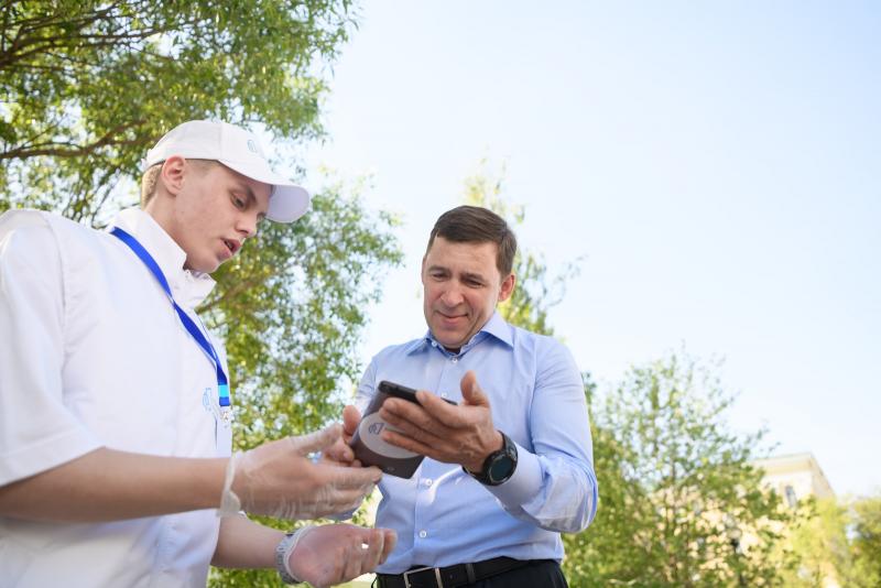 Евгений Куйвашев встретил волонтёров в сквере имени А.С.Попова. Ребята рассказали, что проголосовать можно за любой проект в Свердловской области, но глава региона решил, что, как житель уральской столицы, будет выбирать дизайн одного из парков в Екатеринбурге – Преображенского парка в Академические или Солнечные аллеи в Солнечном. На чём Евгений Куйвашев остановил свой выбор, он признаваться не стал, но призвал уральцев принять участие в проекте.