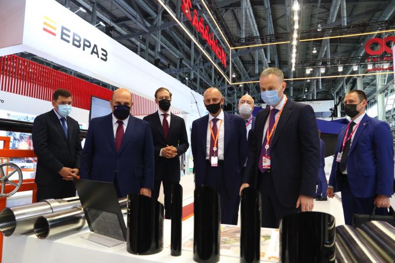 На стенде Трубной металлургической компании и Группы Синара председатель совета директоров ТМК Дмитрий Пумпянский представил главе российского Правительства Михаилу Мишустину научный проект «Умная труба», презентовал газомоторный локомотив ТЭМГ-1 и другие прорывные проекты компаний.