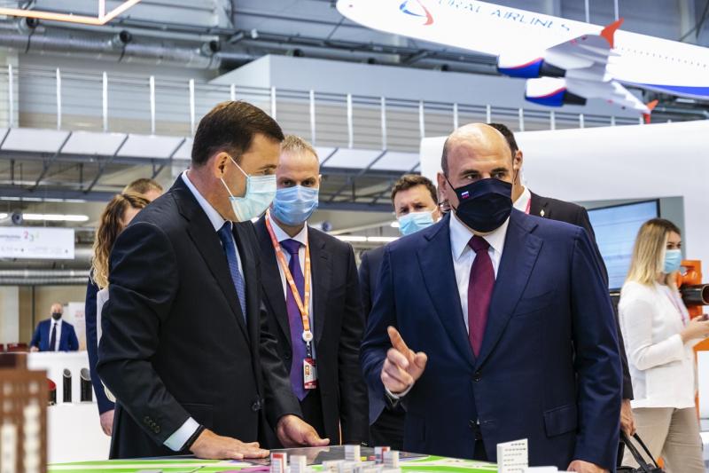 Стенд Свердловской области премьер-министру представил губернатор Евгений Куйвашев. В этом году региональная экспозиция объединена с экспозицией Екатеринбурга. Здесь на площади более чем в одну тысячу квадратных метров представлены знаковые и перспективные уральские проекты.