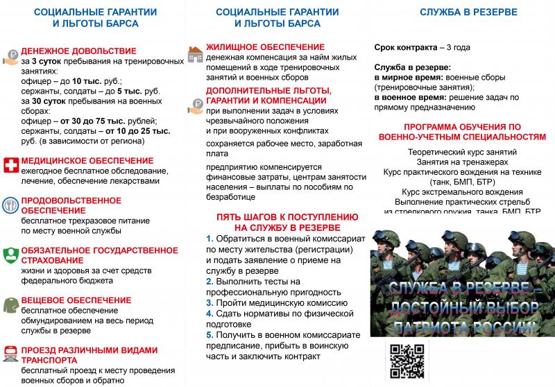 Отличие от действительной военной службы заключается в том, что Вам не требуется ежедневно проходить воинскую службу, Вы так же, как и раньше, занимаетесь своими привычными делами и работаете на своих предприятиях (организациях, учреждениях), но, числясь в резерве ВС, ежемесячно получаете от 2000 до 9000 р. (В зависимости от звания и должности в резерве).