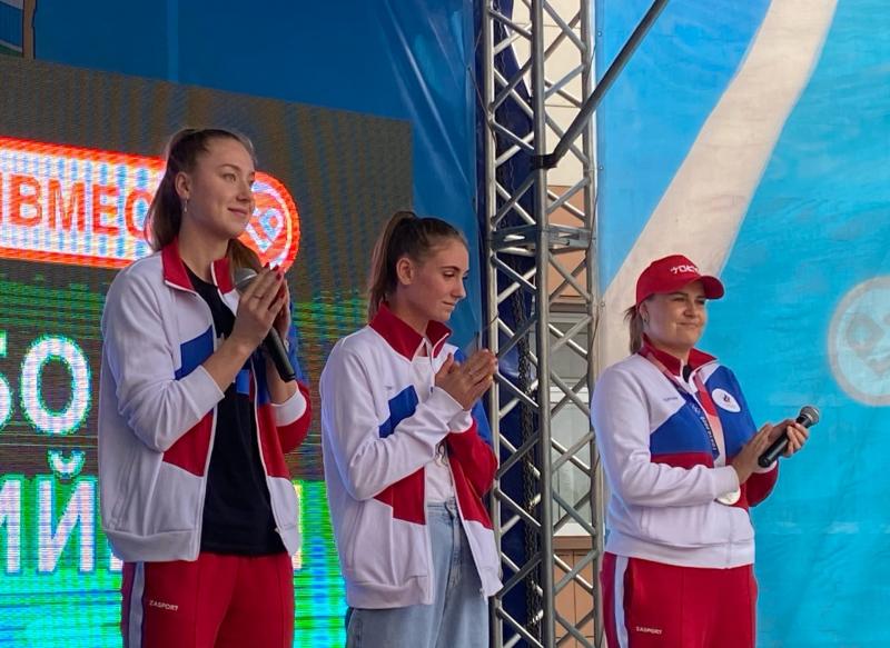 С жителями региона пообщались пловчихи Анастасия Кирпичникова и Дарья Устинова, а также лучница Ксения Перова.