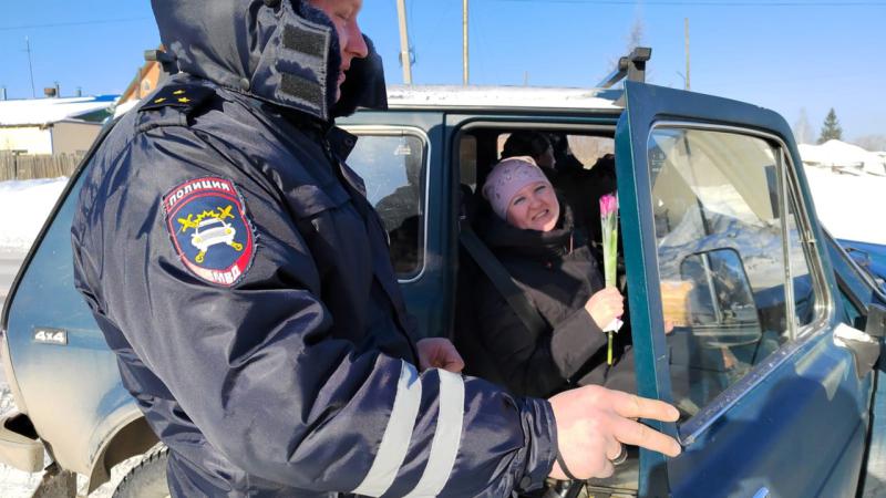 8 Марта, в Международный женский день, сотрудники ГИБДД г.Невьянска провели акцию «Цветочный патруль». По сложившейся традиции в этот день полицейские останавливали автомобили, в которых находились дамы, чтобы поздравить их с Международным женским днём.