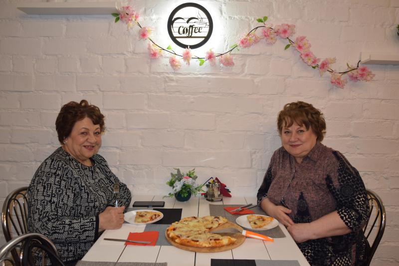 Похорошевшие и от преображения, и от прекрасного настроения, две обворожительные женщины отправились в кафе – как не отметить кружкой чая такое приключение! Цепочку добрых дел продолжила Надежда Суркова, хозяйка вкусного, недавно открывшегося кафе «Семейное», где наших дам угостили вкусными блюдами и порадовали уютной атмосферой.