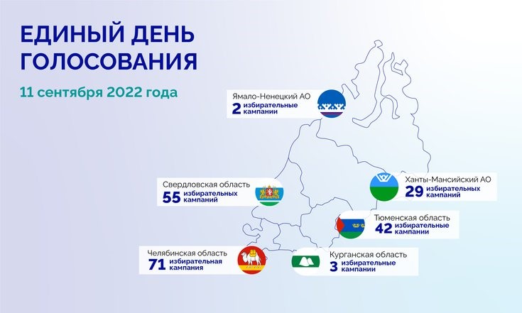 В этом году в УрФО в единый день голосования запланировано 202 избирательные кампании разного уровня. Особое значение имеют выборы губернатора Свердловской области. В регионе также проходят 54 кампании в органы местного самоуправления: выборы депутатов, глав городских и сельских поселений.