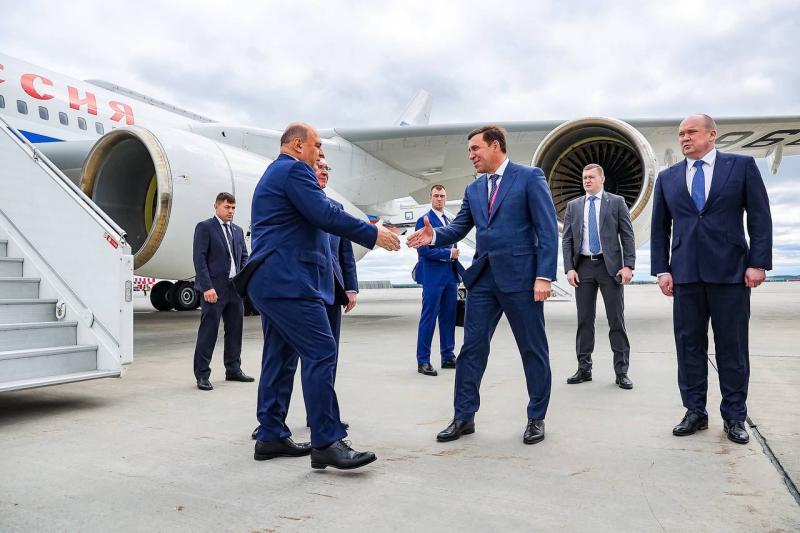 Председатель Правительства России Михаил Мишустин прибыл 4 июля в Екатеринбург для участия в Международной промышленной выставке «ИННОПРОМ-2022». В аэропорту Кольцово главу Правительства встретил губернатор Свердловской области Евгений Куйвашев.