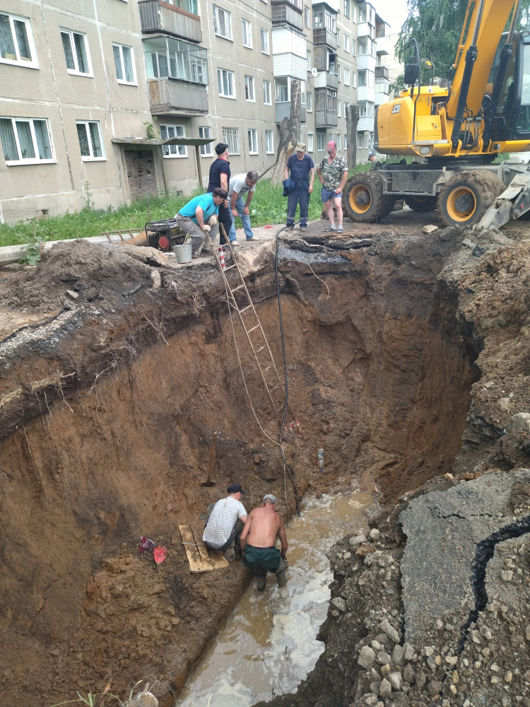 Утром того же дня за домом №17 по ул.М.Горького были произведены раскопки. Несколько часов ушло на то, чтобы изыскать место порыва водопроводной трубы. Когда оно было обнаружено, принято решение «залатать» дыру хомутом. Выдержит или нет? – другой вопрос. Однако иных вариантов для оперативного устранения аварийной ситуации попросту не имелось.