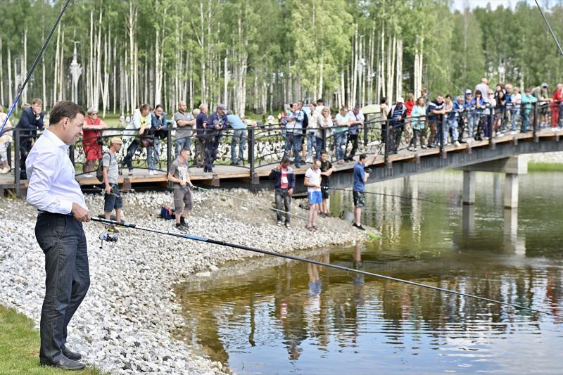 В финале рабочей поездки в Волчанск губернатор проверил, в каком состоянии находится Комсомольский парк у южной части города, благоустроенный в 2019 году. Инициаторами проведения работ тогда стали местные ветераны. А сегодня здесь большое событие – городская рыбалка: жители Волчанка соревнуются в рыбной ловле. Евгений Куйвашев тоже не остался в стороне и выловил из пруда рыбу породы буффало.
