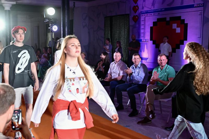 Сегодня же в «Домне» прошел показ капсульной коллекции мерча: она была создана в fashion-коворкинге креативного кластера, в изделиях уральских дизайнеров нашли отражение работы фестиваля разных лет.