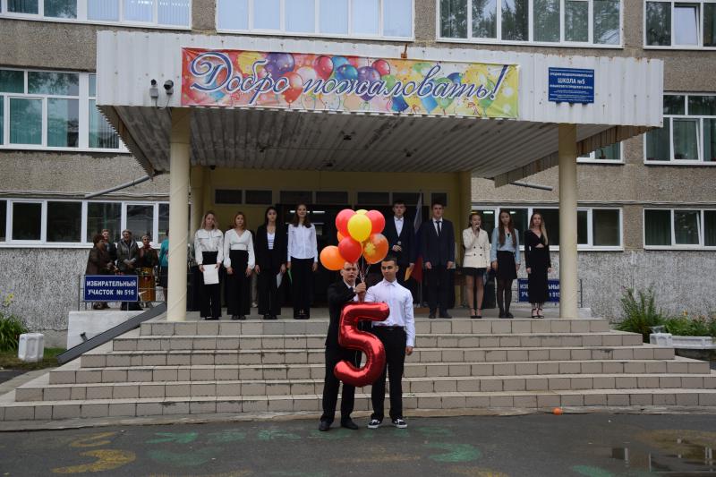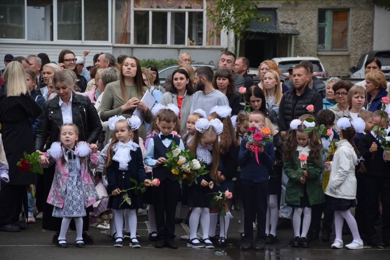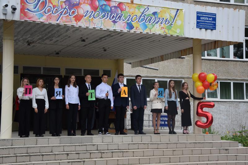 Несмотря на то, что первый день осени оказался по-настоящему осенним, праздничная линейка в школе №5 прошла под открытым небом. Прохладной погоды и небольшого дождя не испугались ни вновь вернувшиеся в стены школы старшеклассники, ни первоклашки. И те, и другие вместе со своими классными руководителями прошли на линейку под аплодисменты присутствовавших.