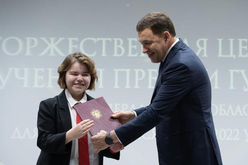Губернатор Свердловской области Евгений Куйвашев 20 сентября вручил премии лучшим школьникам региона и их педагогам. Учащиеся получили дипломы и денежные премии за достижения в интеллектуальной, спортивной, социально значимой и творческой деятельности. Впервые премии губернатора получают 96 педагогов, подготовивших победителей и призеров Всероссийской олимпиады школьников.