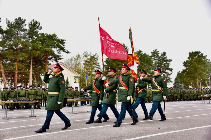 В Уральском окружном учебном центре в Елани 29 сентября в торжественной обстановке под вынос Знамени Победы и боевого Знамени учебного центра, первым 100 из числа мобилизованных вручили личное стрелковое оружие.