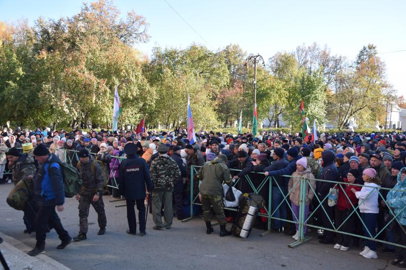 Отправка, оказавшаяся самой массовой в нашем округе с момента объявления частичной мобилизации, осуществлялась от Дворца культуры машиностроителей. О точных цифрах мобилизованных в тот день сотрудники военного комиссариата по г.Невьянск, г.Кировград, г.Верхний Тагил и Невьянскому району не сообщают, но общее количество автобусов (пять), на которых наши защитники Отечества отправились выполнять свой долг, и без того дают общее представление.