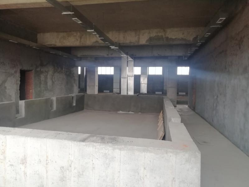 Хотя и здесь уже выполнен огромный объем работ. В частности, уже готовы все инженерные системы: водоснабжения (горячего и холодного), водоотведения, электро- и теплоснабжения, вентиляции. Полностью готов к приему всего необходимого для жизнедеятельности бассейна оборудования цокольный этаж, так называемый подвал. Здесь, как и во всем здании, залиты монолитные полы, закончен монтаж вентиляционных коробов, в скором времени начнется монтаж вентиляционного оборудования, которое уже доставлено на объект. Подвальное помещение по праву можно назвать сердцем всего бассейна, обеспечивающим его деятельность: здесь разместится оборудование подготовки и фильтрации воды, водообменное оборудование, которое должно поступить к концу текущего года.