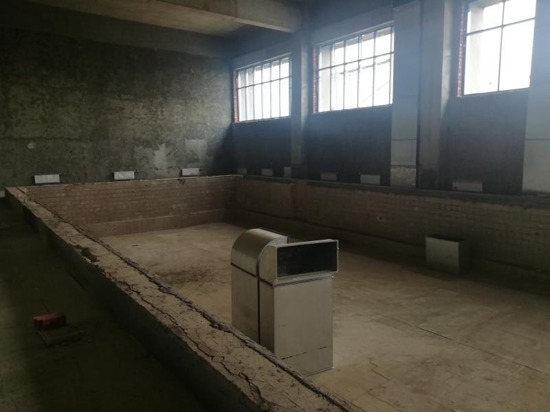 Кроме того, в подвале будут установлены насосы пожарных гидрантов, поступление которых тоже ожидается в ближайшее время, поскольку в остальном вся система пожаротушения уже готова. Вместительные пожарные резервуары установлены под землей. На втором этаже (возле взрослого бассейна) предусмотрен дополнительный запасный выход на эвакуационную лестницу.