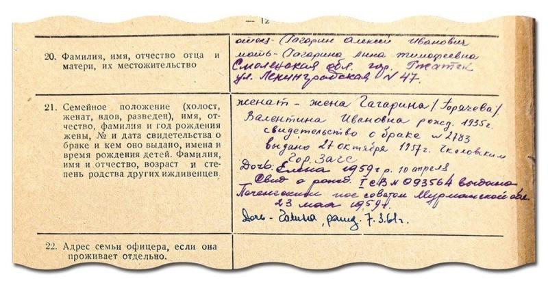 Оказывается, долгие годы в Звездном городке, в Центре подготовки космонавтов, "за семью печатями" хранилось личное дело Юрия Гагарина. Его завели в 1955 г., когда Гагарин поступил в 1-е Чкаловское военное авиационное училище летчиков (ЧВАУЛ) в Оренбурге. После трагической гибели первого космонавта 27 марта 1968 года оригинал в виде исключения не передали на хранение в минобороны, а оставили в архиве ЦПК.