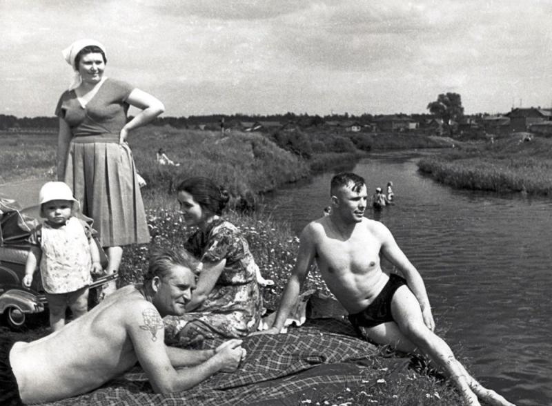 Июнь 1960 г., берег Клязьмы. Юрий и Валентина Гагарины с дочерью Леной, двоюродная сестра Гагарина Надежда Щекочихина с мужем Александром. Фото: Роскосмос