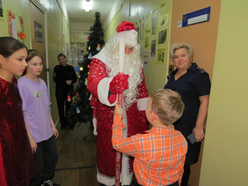 В рамках акции «Полицейский Дед Мороз», роль которого исполнил председатель Совета ветеранов МО МВД России «Невьянский» Евгений Попов, ребятам, состоящим на различных видах учета, были вручены приглашение на новогоднюю ёлку главы Невьянского городского округа и на спектакль «Щелкунчик и Мышиный король». Дед Мороз выслушал все самые заветные желания детей. По традиции дети читали стихотворения и пели песни, рассказывали о личных успехах в уходящем году.