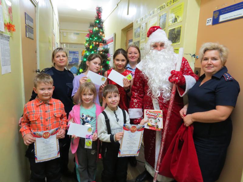 27 декабря в здании МО МВД России «Невьянский» Дед Мороз роль, которого исполнил председатель Совета ветеранов МО МВД России «Невьянский» Евгений Попов, подарил всем ребятам, участвующим в конкурсе ценные подарки и сертификаты в детское кафе. Дед Мороз выслушал все самые заветные желания детей, а также подготовленные ими концертные номера.